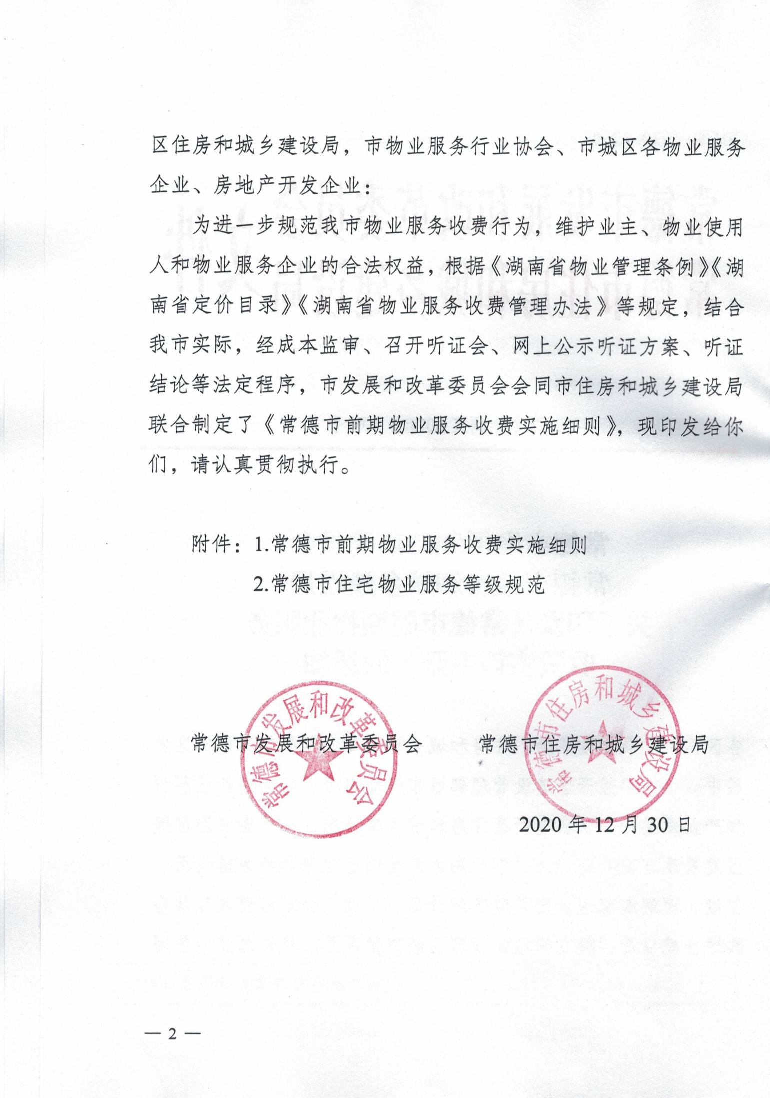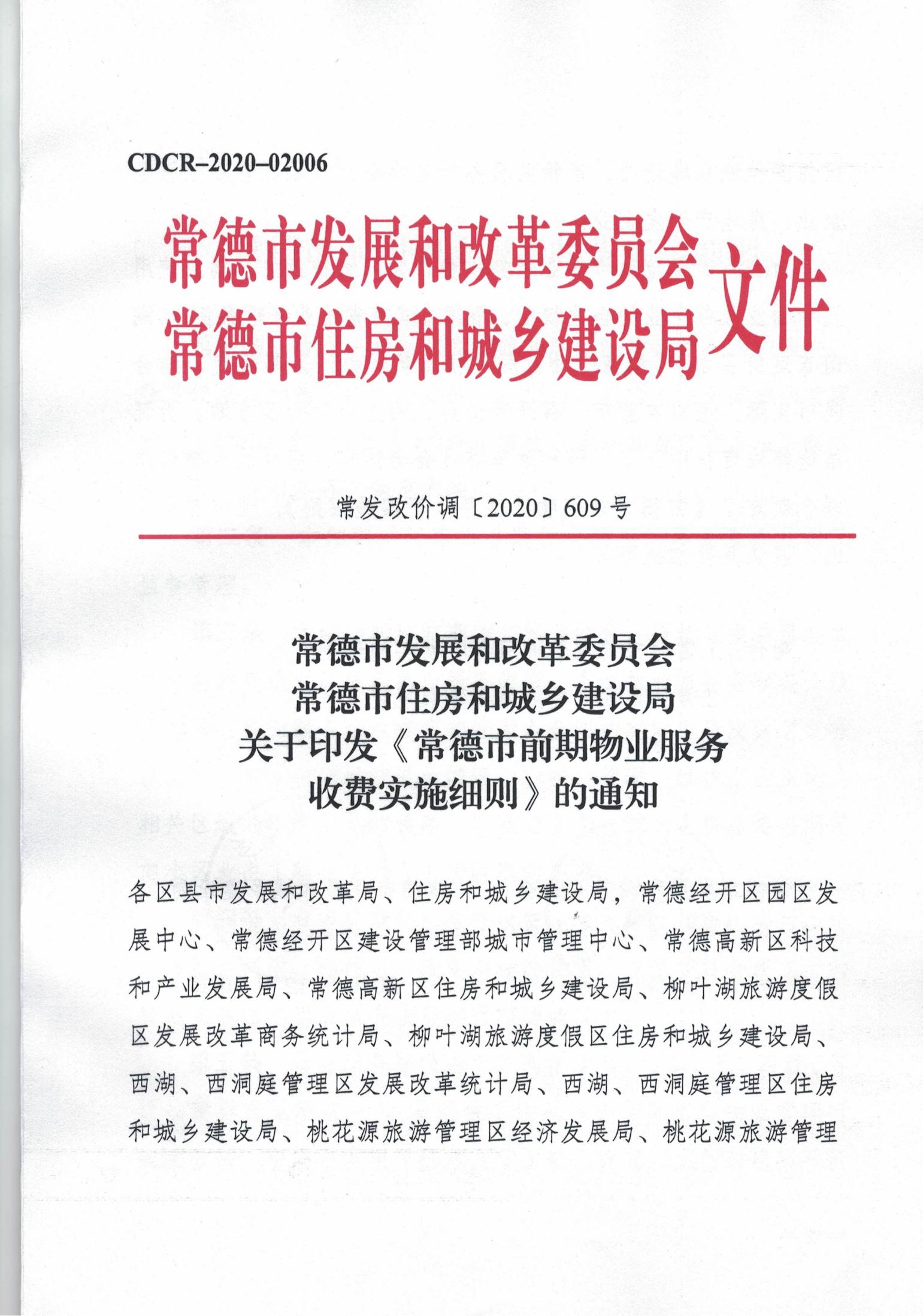 常德市發(fā)展和改革委員會 常德市住房和城鄉(xiāng)建設局 關于印發(fā)《常德市前期物業(yè)服務 收費實施細則》的通知